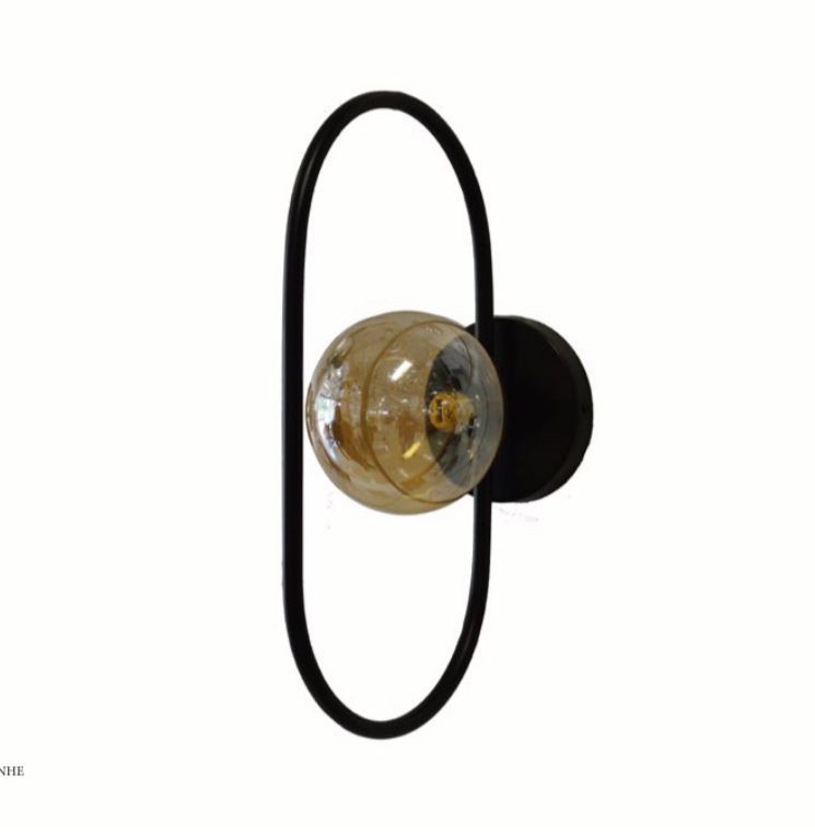 ARANDELA EM METAL PRETO COM VIDRO CHAMPAGNE 01 SOQUETE G-9